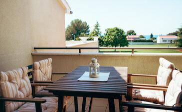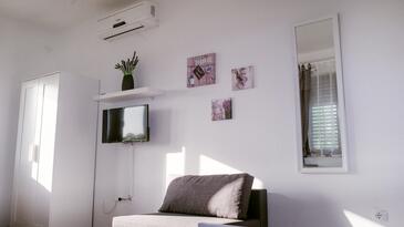 Ferienwohnung bietet Platz für 5 Gäste. Die Betten sind in Schlafzimmern, die es 2 gibt, und in Wohnzimmer, innerhalb einer Gesamtfläche von 58m2, angeordnet. Die Gäste haben eine eigene Terrasse zur Verfügung, auf der sie in warmen Sommernächten genießen können. Das Apartment bietet Meerblick. Es ist erlaubt, Speisen auf dem Gemeinschafts-Grill vorzubereiten.