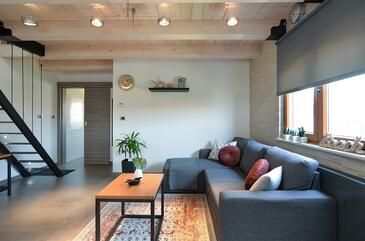 Ferienwohnung bietet Platz für 4 Gäste. Die Betten sind in Schlafzimmern, die es 1 gibt, und in Wohnzimmer, innerhalb einer Gesamtfläche von 47m2, angeordnet. Die Gäste haben eine eigene Terrasse zur Verfügung, auf der sie in warmen Sommernächten genießen können. Es ist erlaubt, Speisen auf dem Gemeinschafts-Grill vorzubereiten.