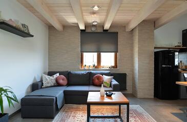 Ferienwohnung bietet Platz für 4 Gäste. Die Betten sind in Schlafzimmern, die es 1 gibt, und in Wohnzimmer, innerhalb einer Gesamtfläche von 47m2, angeordnet. Die Gäste haben eine eigene Terrasse zur Verfügung, auf der sie in warmen Sommernächten genießen können. Es ist erlaubt, Speisen auf dem Gemeinschafts-Grill vorzubereiten.
