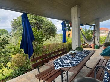 Ferienwohnung bietet Platz für 4 Gäste. Die Betten sind in Schlafzimmern, die es 2 gibt, innerhalb einer Gesamtfläche von 105m2, angeordnet. Die Gäste haben eine eigene Terrasse zur Verfügung, auf der sie in warmen Sommernächten genießen können. Das Apartment bietet Meerblick. Für vollen Genuss und Entspannung gibt es einen privaten Grill für Gäste dieser Unterkunft.