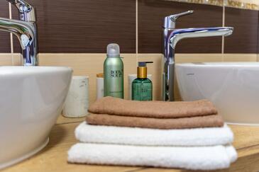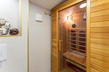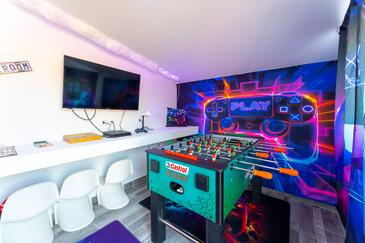 Haus bietet Platz für 9 Gäste. Die Betten sind in Schlafzimmern, die es 4 gibt, und in Wohnzimmer, innerhalb einer Gesamtfläche von 189m2, angeordnet. Die Gäste haben eine eigene Terrasse zur Verfügung, auf der sie in warmen Sommernächten genießen können. Für vollen Genuss und Entspannung gibt es einen privaten Grill für Gäste dieser Unterkunft. Während ihres Aufenthalts können sich Gäste im privaten Schwimmbad entspannen.