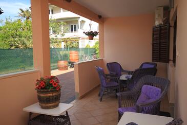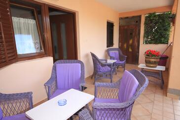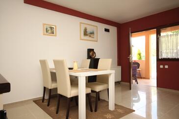 Ferienwohnung bietet Platz für 6 Gäste. Die Betten sind in Schlafzimmern, die es 2 gibt, und in Wohnzimmer, innerhalb einer Gesamtfläche von 43m2, angeordnet. Die Gäste haben eine eigene Terrasse zur Verfügung, auf der sie in warmen Sommernächten genießen können. Es ist erlaubt, Speisen auf dem Gemeinschafts-Grill vorzubereiten. In der Unterkunftseinheit besteht die Möglichkeit des Mitbringens von Haustieren gegen Aufpreis.