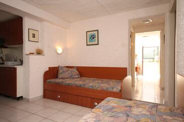 Ferienwohnung bietet Platz für 3 Gäste. Die Betten sind in Schlafzimmern, die es 1 gibt, und in Wohnzimmer, innerhalb einer Gesamtfläche von 39m2, angeordnet. Die Gäste haben eine eigene Terrasse zur Verfügung, auf der sie in warmen Sommernächten genießen können. Für vollen Genuss und Entspannung gibt es einen privaten Grill für Gäste dieser Unterkunft. In der Unterkunftseinheit besteht die Möglichkeit des Mitbringens von Haustieren gegen Aufpreis. Unterkunftseinheit hat Räume, die von dem Rest der Einheit abgetrennt werden.