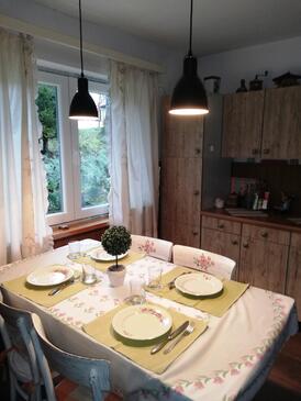 Haus bietet Platz für 5 Gäste. Die Betten sind in Schlafzimmern, die es 1 gibt, und in Wohnzimmer, innerhalb einer Gesamtfläche von 48m2, angeordnet. Die Gäste haben eine eigene Terrasse zur Verfügung, auf der sie in warmen Sommernächten genießen können. Es ist erlaubt, Speisen auf dem Gemeinschafts-Grill vorzubereiten. In der Unterkunftseinheit besteht die Möglichkeit des Mitbringens von Haustieren, und die Dienstleistung ist im Preis der Unterkunft enthalten.