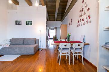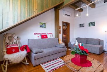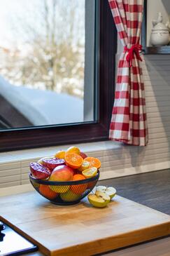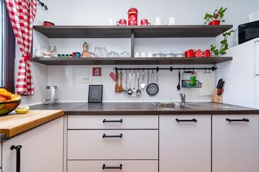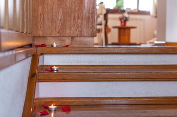 Ferienwohnung bietet Platz für 6 Gäste. Die Betten sind in Schlafzimmern, die es 2 gibt, innerhalb einer Gesamtfläche von 74m2, angeordnet. Die Gäste haben eine eigene Terrasse zur Verfügung, auf der sie in warmen Sommernächten genießen können.