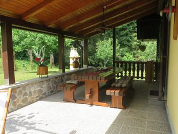 Haus bietet Platz für 5 Gäste. Die Betten sind in Schlafzimmern, die es 2 gibt, innerhalb einer Gesamtfläche von 76m2, angeordnet. Die Gäste haben eine eigene Terrasse zur Verfügung, auf der sie in warmen Sommernächten genießen können. Für vollen Genuss und Entspannung gibt es einen privaten Grill für Gäste dieser Unterkunft.