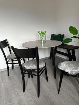 Ferienwohnung bietet Platz für 7 Gäste. Die Betten sind in Schlafzimmern, die es 2 gibt, und in Wohnzimmer, innerhalb einer Gesamtfläche von 72m2, angeordnet. Die Gäste haben einen eigenen Balkon zur Verfügung, auf der sie in warmen Sommernächten genießen können. Für vollen Genuss und Entspannung gibt es einen privaten Grill für Gäste dieser Unterkunft. In der Unterkunftseinheit besteht die Möglichkeit des Mitbringens von Haustieren, und die Dienstleistung ist im Preis der Unterkunft enthalten.