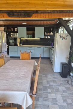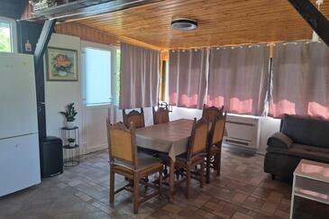 Haus bietet Platz für 7 Gäste. Die Betten sind in Schlafzimmern, die es 2 gibt, und in Wohnzimmer, innerhalb einer Gesamtfläche von 63m2, angeordnet. Die Gäste haben eine eigene Terrasse zur Verfügung, auf der sie in warmen Sommernächten genießen können. Für vollen Genuss und Entspannung gibt es einen privaten Grill für Gäste dieser Unterkunft.