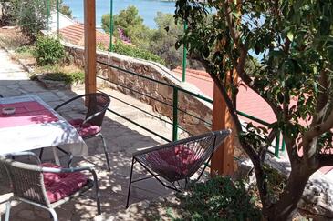 Ferienwohnung bietet Platz für 4 Gäste. Die Betten sind in Schlafzimmern, die es 3 gibt, innerhalb einer Gesamtfläche von 72m2, angeordnet. Die Gäste haben eine eigene Terrasse zur Verfügung, auf der sie in warmen Sommernächten genießen können. Das Apartment bietet Meerblick. Es ist erlaubt, Speisen auf dem Gemeinschafts-Grill vorzubereiten.