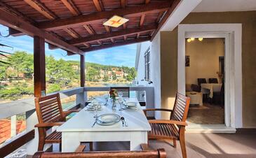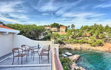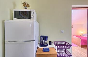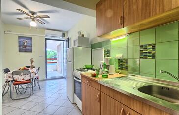 Ferienwohnung bietet Platz für 4 Gäste. Die Betten sind in Schlafzimmern, die es 2 gibt, innerhalb einer Gesamtfläche von 32m2, angeordnet. Die Gäste haben eine eigene Terrasse zur Verfügung, auf der sie in warmen Sommernächten genießen können. Das Apartment bietet Meerblick. Es ist erlaubt, Speisen auf dem Gemeinschafts-Grill vorzubereiten. In der Unterkunftseinheit besteht die Möglichkeit des Mitbringens von Haustieren gegen Aufpreis.