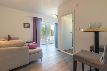 Ferienwohnung bietet Platz für 5 Gäste. Die Betten sind in Schlafzimmern, die es 2 gibt, innerhalb einer Gesamtfläche von 41m2, angeordnet. Die Gäste haben eine eigene Terrasse zur Verfügung, auf der sie in warmen Sommernächten genießen können. Für vollen Genuss und Entspannung gibt es einen privaten Grill für Gäste dieser Unterkunft. In der Unterkunftseinheit besteht die Möglichkeit des Mitbringens von Haustieren gegen Aufpreis.