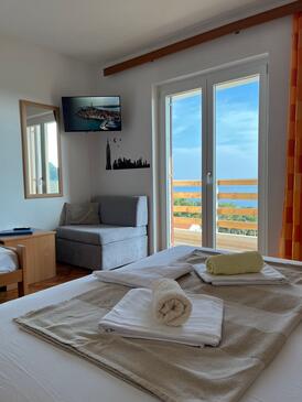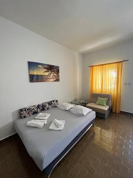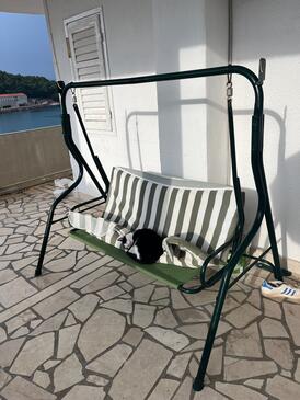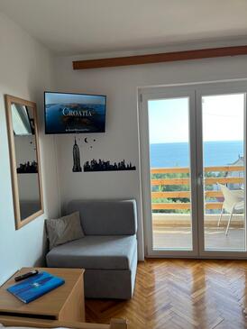 Ferienwohnung bietet Platz für 5 Gäste. Die Betten sind in Schlafzimmern, die es 1 gibt, und in Wohnzimmer, innerhalb einer Gesamtfläche von 55m2, angeordnet. Die Gäste haben eine eigene Terrasse zur Verfügung, auf der sie in warmen Sommernächten genießen können. Das Apartment bietet Meerblick. In der Unterkunftseinheit besteht die Möglichkeit des Mitbringens von Haustieren gegen Aufpreis.