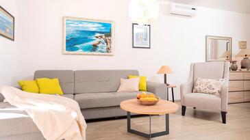 Haus bietet Platz für 7 Gäste. Die Betten sind in Schlafzimmern, die es 3 gibt, und in Wohnzimmer, innerhalb einer Gesamtfläche von 125m2, angeordnet. Die Gäste haben eine eigene Terrasse zur Verfügung, auf der sie in warmen Sommernächten genießen können. Für vollen Genuss und Entspannung gibt es einen privaten Grill für Gäste dieser Unterkunft. In der gebuchten Unterkunftseinheit zahlt man am Ort ein Depositum ( der Preis ist an der Internetseite angeführt ).