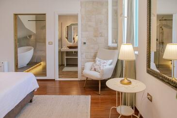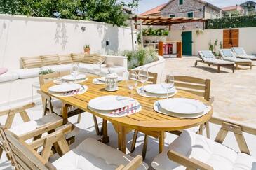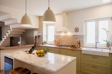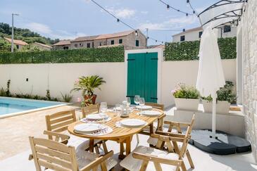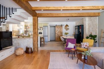 Haus bietet Platz für 6 Gäste. Die Betten sind in Schlafzimmern, die es 3 gibt, innerhalb einer Gesamtfläche von 166m2, angeordnet. Die Gäste haben eine eigene Terrasse zur Verfügung, auf der sie in warmen Sommernächten genießen können. Für vollen Genuss und Entspannung gibt es einen privaten Grill für Gäste dieser Unterkunft. Während ihres Aufenthalts können Gäste das gemeinsam zur Nutzung stehende Schwimmbad benutzen.