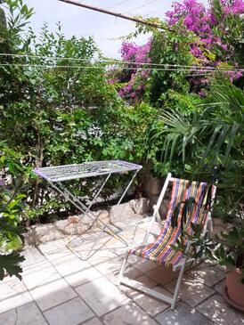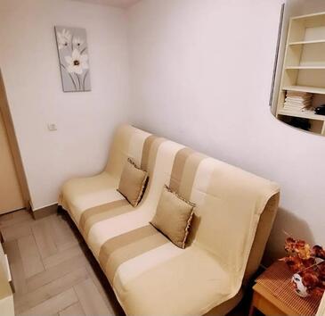 Ferienwohnung bietet Platz für 2 Gäste. Die Betten sind in Schlafzimmern, die es 1 gibt, innerhalb einer Gesamtfläche von 42m2, angeordnet. Die Gäste haben eine eigene Terrasse zur Verfügung, auf der sie in warmen Sommernächten genießen können. Das Apartment bietet Meerblick. Es ist erlaubt, Speisen auf dem Gemeinschafts-Grill vorzubereiten.