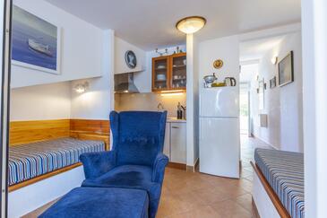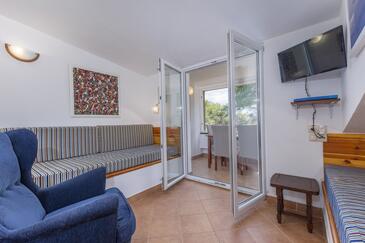 Ferienwohnung bietet Platz für 4 Gäste. Die Betten sind in Schlafzimmern, die es 1 gibt, und in Wohnzimmer, innerhalb einer Gesamtfläche von 28m2, angeordnet. Die Gäste haben eine eigene Terrasse zur Verfügung, auf der sie in warmen Sommernächten genießen können. Das Apartment bietet Meerblick. Es ist erlaubt, Speisen auf dem Gemeinschafts-Grill vorzubereiten. In der gebuchten Unterkunftseinheit zahlt man am Ort ein Depositum ( der Preis ist an der Internetseite angeführt ).