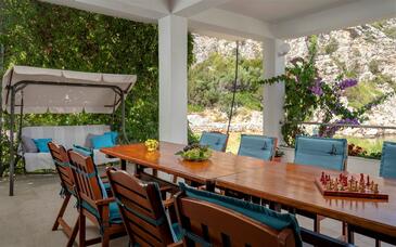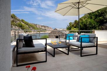 Haus bietet Platz für 10 Gäste. Die Betten sind in Schlafzimmern, die es 5 gibt, innerhalb einer Gesamtfläche von 108m2, angeordnet. Die Gäste haben eine eigene Terrasse zur Verfügung, auf der sie in warmen Sommernächten genießen können. Das Haus bietet Meerblick. Für vollen Genuss und Entspannung gibt es einen privaten Grill für Gäste dieser Unterkunft. In der Unterkunftseinheit besteht die Möglichkeit des Mitbringens von Haustieren gegen Aufpreis.