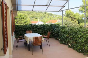 Ferienwohnung bietet Platz für 5 Gäste. Die Betten sind in Schlafzimmern, die es 2 gibt, und in Wohnzimmer, innerhalb einer Gesamtfläche von 57m2, angeordnet. Die Gäste haben eine eigene Terrasse zur Verfügung, auf der sie in warmen Sommernächten genießen können. Das Apartment bietet Meerblick. Es ist erlaubt, Speisen auf dem Gemeinschafts-Grill vorzubereiten. In der Unterkunftseinheit besteht die Möglichkeit des Mitbringens von Haustieren, und die Dienstleistung ist im Preis der Unterkunft enthalten.