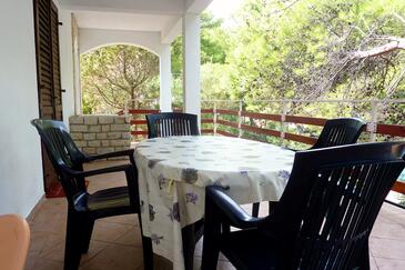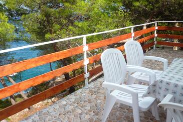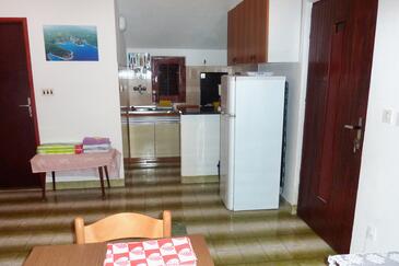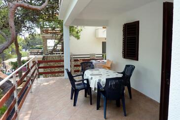 Ferienwohnung bietet Platz für 5 Gäste. Die Betten sind in Schlafzimmern, die es 2 gibt, und in Esszimmer, innerhalb einer Gesamtfläche von 43m2, angeordnet. Die Gäste haben eine eigene Terrasse zur Verfügung, auf der sie in warmen Sommernächten genießen können. Das Apartment bietet Meerblick. Es ist erlaubt, Speisen auf dem Gemeinschafts-Grill vorzubereiten.