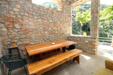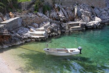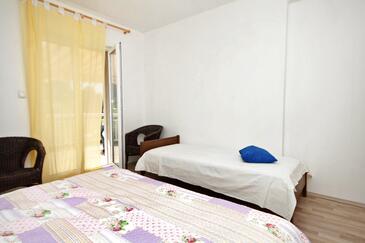 Ferienwohnung bietet Platz für 5 Gäste. Die Betten sind in Schlafzimmern, die es 2 gibt, und in Wohnzimmer, innerhalb einer Gesamtfläche von 51m2, angeordnet. Die Gäste haben eine eigene Terrasse zur Verfügung, auf der sie in warmen Sommernächten genießen können. Das Apartment bietet Meerblick. Es ist erlaubt, Speisen auf dem Gemeinschafts-Grill vorzubereiten.