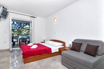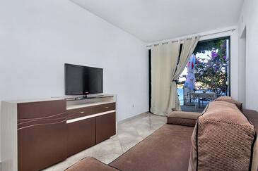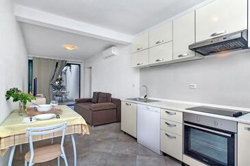 Ferienwohnung bietet Platz für 5 Gäste. Die Betten sind in Schlafzimmern, die es 1 gibt, und in Wohnzimmer, innerhalb einer Gesamtfläche von 36m2, angeordnet. Die Gäste haben eine eigene Terrasse zur Verfügung, auf der sie in warmen Sommernächten genießen können. Das Apartment bietet Meerblick. Es ist erlaubt, Speisen auf dem Gemeinschafts-Grill vorzubereiten. In der Unterkunftseinheit besteht die Möglichkeit des Mitbringens von Haustieren gegen Aufpreis.