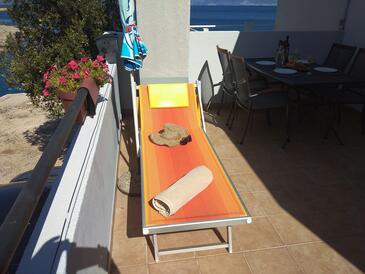 Ferienwohnung bietet Platz für 3 Gäste. Die Betten sind in Schlafzimmern, die es 1 gibt, und in Wohnzimmer, innerhalb einer Gesamtfläche von 27m2, angeordnet. Die Gäste haben eine eigene Terrasse zur Verfügung, auf der sie in warmen Sommernächten genießen können. Das Apartment bietet Meerblick. Es ist erlaubt, Speisen auf dem Gemeinschafts-Grill vorzubereiten. In der Unterkunftseinheit besteht die Möglichkeit des Mitbringens von Haustieren, und die Dienstleistung ist im Preis der Unterkunft enthalten.