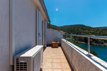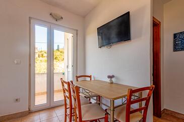 Ferienwohnung bietet Platz für 5 Gäste. Die Betten sind in Schlafzimmern, die es 2 gibt, innerhalb einer Gesamtfläche von 43m2, angeordnet. Die Gäste haben eine eigene Terrasse zur Verfügung, auf der sie in warmen Sommernächten genießen können. Das Apartment bietet Meerblick. Es ist erlaubt, Speisen auf dem Gemeinschafts-Grill vorzubereiten. In der Unterkunftseinheit besteht die Möglichkeit des Mitbringens von Haustieren, und die Dienstleistung ist im Preis der Unterkunft enthalten.