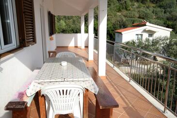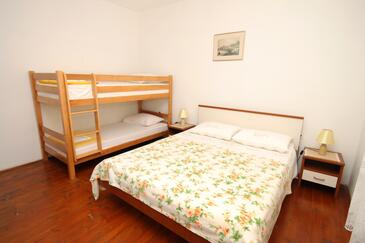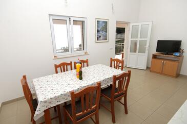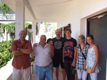 Ferienwohnung bietet Platz für 8 Gäste. Die Betten sind in Schlafzimmern, die es 3 gibt, innerhalb einer Gesamtfläche von 59m2, angeordnet. Die Gäste haben eine eigene Terrasse zur Verfügung, auf der sie in warmen Sommernächten genießen können. Das Apartment bietet Meerblick. Es ist erlaubt, Speisen auf dem Gemeinschafts-Grill vorzubereiten.