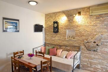 Ferienwohnung bietet Platz für 3 Gäste. Die Betten sind in Schlafzimmern, die es 1 gibt, und in Wohnzimmer, innerhalb einer Gesamtfläche von 37m2, angeordnet. Die Gäste haben eine eigene Terrasse zur Verfügung, auf der sie in warmen Sommernächten genießen können. Das Apartment bietet Meerblick. Es ist erlaubt, Speisen auf dem Gemeinschafts-Grill vorzubereiten. Während ihres Aufenthalts können Gäste das gemeinsam zur Nutzung stehende Schwimmbad benutzen. In der Unterkunftseinheit besteht die Möglichkeit des Mitbringens von Haustieren, und die Dienstleistung ist im Preis der Unterkunft enthalten.