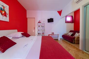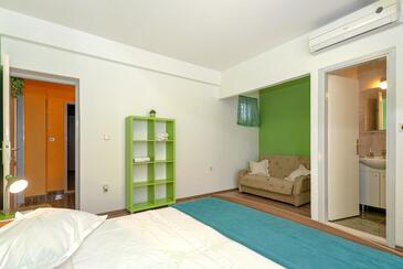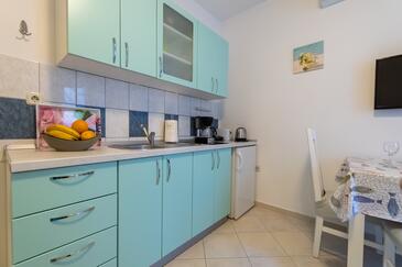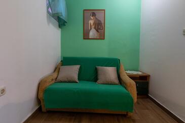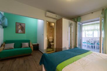 Ferienwohnung bietet Platz für 3 Gäste. Die Betten sind in Schlafzimmern, die es 1 gibt, innerhalb einer Gesamtfläche von 27m2, angeordnet. Die Gäste haben eine eigene Terrasse zur Verfügung, auf der sie in warmen Sommernächten genießen können. Es ist erlaubt, Speisen auf dem Gemeinschafts-Grill vorzubereiten.