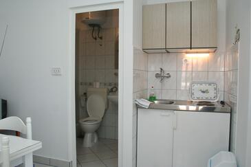 Ferienwohnung bietet Platz für 2 Gäste. Die Betten sind in Schlafzimmern, die es 1 gibt, innerhalb einer Gesamtfläche von 25m2, angeordnet. Die Gäste haben eine eigene Terrasse zur Verfügung, auf der sie in warmen Sommernächten genießen können. Das Apartment bietet Meerblick. Es ist erlaubt, Speisen auf dem Gemeinschafts-Grill vorzubereiten. In der Unterkunftseinheit besteht die Möglichkeit des Mitbringens von Haustieren gegen Aufpreis.