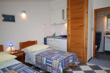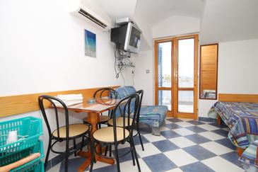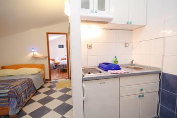 Ferienwohnung bietet Platz für 4 Gäste. Die Betten sind in Schlafzimmern, die es 1 gibt, und in Wohnzimmer, innerhalb einer Gesamtfläche von 32m2, angeordnet. Die Gäste haben einen eigenen Balkon zur Verfügung, auf der sie in warmen Sommernächten genießen können. Das Apartment bietet Meerblick. Es ist erlaubt, Speisen auf dem Gemeinschafts-Grill vorzubereiten. In der Unterkunftseinheit besteht die Möglichkeit des Mitbringens von Haustieren gegen Aufpreis.