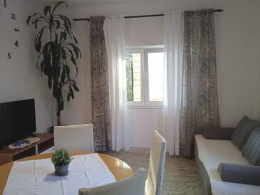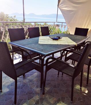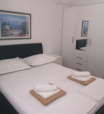 Ferienwohnung bietet Platz für 8 Gäste. Die Betten sind in Schlafzimmern, die es 4 gibt, innerhalb einer Gesamtfläche von 107m2, angeordnet. Die Gäste haben eine eigene Terrasse zur Verfügung, auf der sie in warmen Sommernächten genießen können. Das Apartment bietet Meerblick. Es ist erlaubt, Speisen auf dem Gemeinschafts-Grill vorzubereiten.