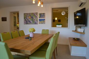 Haus bietet Platz für 8 Gäste. Die Betten sind in Schlafzimmern, die es 4 gibt, innerhalb einer Gesamtfläche von 192m2, angeordnet. Die Gäste haben eine eigene Terrasse zur Verfügung, auf der sie in warmen Sommernächten genießen können. Das Haus bietet Meerblick. Für vollen Genuss und Entspannung gibt es einen privaten Grill für Gäste dieser Unterkunft.