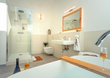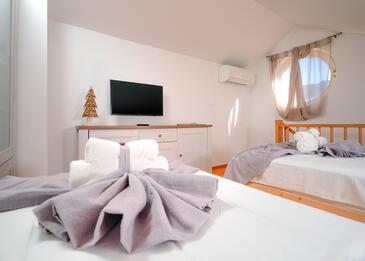 Haus bietet Platz für 10 Gäste. Die Betten sind in Schlafzimmern, die es 4 gibt, innerhalb einer Gesamtfläche von 247m2, angeordnet. Die Gäste haben eine eigene Terrasse zur Verfügung, auf der sie in warmen Sommernächten genießen können. Das Haus bietet Meerblick. Für vollen Genuss und Entspannung gibt es einen privaten Grill für Gäste dieser Unterkunft. Während ihres Aufenthalts können sich Gäste im privaten Schwimmbad entspannen. In der Unterkunftseinheit besteht die Möglichkeit des Mitbringens von Haustieren gegen Aufpreis.