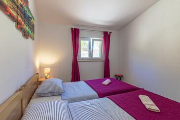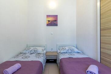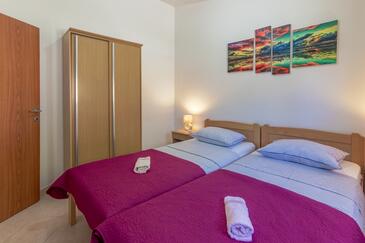 Ferienwohnung bietet Platz für 8 Gäste. Die Betten sind in Schlafzimmern, die es 4 gibt, innerhalb einer Gesamtfläche von 70m2, angeordnet. Die Gäste haben eine eigene Terrasse zur Verfügung, auf der sie in warmen Sommernächten genießen können. Das Apartment bietet Meerblick. Es ist erlaubt, Speisen auf dem Gemeinschafts-Grill vorzubereiten. In der Unterkunftseinheit besteht die Möglichkeit des Mitbringens von Haustieren, und die Dienstleistung ist im Preis der Unterkunft enthalten.