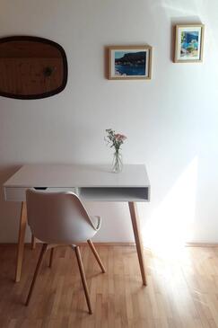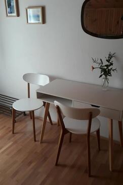 Ferienwohnung bietet Platz für 8 Gäste. Die Betten sind in Schlafzimmern, die es 3 gibt, innerhalb einer Gesamtfläche von 79m2, angeordnet. Die Gäste haben eine eigene Terrasse zur Verfügung, auf der sie in warmen Sommernächten genießen können. Das Apartment bietet Meerblick. Es ist erlaubt, Speisen auf dem Gemeinschafts-Grill vorzubereiten.