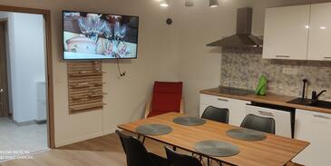 Ferienwohnung bietet Platz für 4 Gäste. Die Betten sind in Schlafzimmern, die es 2 gibt, innerhalb einer Gesamtfläche von 69m2, angeordnet. Die Gäste haben eine eigene Terrasse zur Verfügung, auf der sie in warmen Sommernächten genießen können. Es ist erlaubt, Speisen auf dem Gemeinschafts-Grill vorzubereiten. In der Unterkunftseinheit besteht die Möglichkeit des Mitbringens von Haustieren gegen Aufpreis.