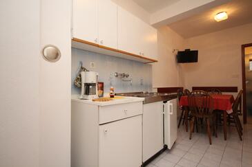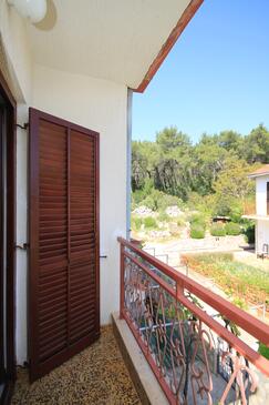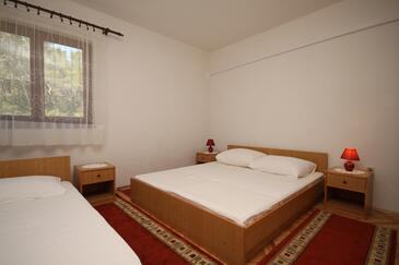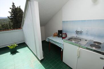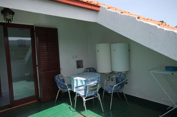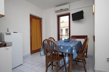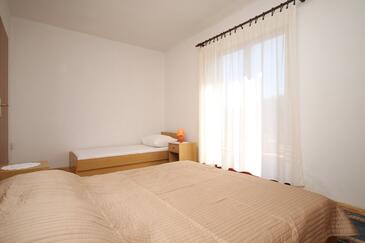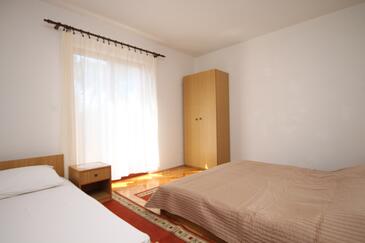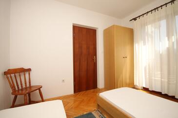 Ferienwohnung bietet Platz für 6 Gäste. Die Betten sind in Schlafzimmern, die es 2 gibt, innerhalb einer Gesamtfläche von 38m2, angeordnet. Die Gäste haben einen eigenen Balkon zur Verfügung, auf der sie in warmen Sommernächten genießen können. Es ist erlaubt, Speisen auf dem Gemeinschafts-Grill vorzubereiten.