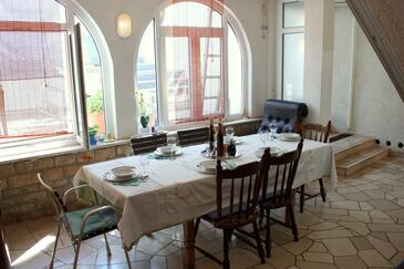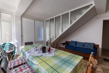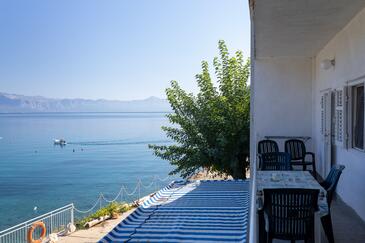 Ferienwohnung bietet Platz für 7 Gäste. Die Betten sind in Schlafzimmern, die es 3 gibt, und in Wohnzimmer, innerhalb einer Gesamtfläche von 77m2, angeordnet. Die Gäste haben einen eigenen Balkon zur Verfügung, auf der sie in warmen Sommernächten genießen können. Das Apartment bietet Meerblick. Es ist erlaubt, Speisen auf dem Gemeinschafts-Grill vorzubereiten. In der Unterkunftseinheit besteht die Möglichkeit des Mitbringens von Haustieren gegen Aufpreis.