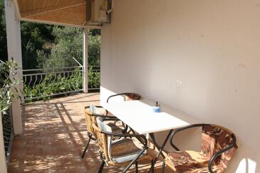 Ferienwohnung bietet Platz für 4 Gäste. Die Betten sind in Schlafzimmern, die es 2 gibt, innerhalb einer Gesamtfläche von 30m2, angeordnet. Die Gäste haben eine eigene Terrasse zur Verfügung, auf der sie in warmen Sommernächten genießen können. Das Apartment bietet Meerblick. Es ist erlaubt, Speisen auf dem Gemeinschafts-Grill vorzubereiten.