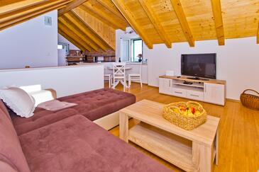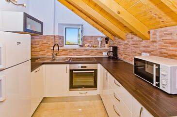 Haus bietet Platz für 5 Gäste. Die Betten sind in Schlafzimmern, die es 2 gibt, und in Wohnzimmer, innerhalb einer Gesamtfläche von 63m2, angeordnet. Die Gäste haben eine eigene Terrasse zur Verfügung, auf der sie in warmen Sommernächten genießen können. Das Haus bietet Meerblick. Für vollen Genuss und Entspannung gibt es einen privaten Grill für Gäste dieser Unterkunft.