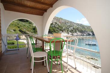 Ferienwohnung bietet Platz für 7 Gäste. Die Betten sind in Schlafzimmern, die es 3 gibt, und in Esszimmer, innerhalb einer Gesamtfläche von 50m2, angeordnet. Die Gäste haben eine eigene Terrasse zur Verfügung, auf der sie in warmen Sommernächten genießen können. Das Apartment bietet Meerblick. Es ist erlaubt, Speisen auf dem Gemeinschafts-Grill vorzubereiten. In der Unterkunftseinheit besteht die Möglichkeit des Mitbringens von Haustieren gegen Aufpreis.