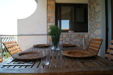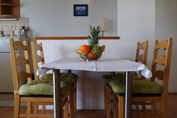 Ferienwohnung bietet Platz für 2 Gäste. Die Betten sind in Schlafzimmern, die es 1 gibt, innerhalb einer Gesamtfläche von 30m2, angeordnet. Die Gäste haben eine eigene Terrasse zur Verfügung, auf der sie in warmen Sommernächten genießen können. Das Apartment bietet Meerblick. Es ist erlaubt, Speisen auf dem Gemeinschafts-Grill vorzubereiten. In der Unterkunftseinheit besteht die Möglichkeit des Mitbringens von Haustieren gegen Aufpreis.