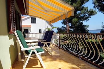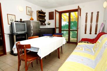 Ferienwohnung bietet Platz für 5 Gäste. Die Betten sind in Schlafzimmern, die es 2 gibt, innerhalb einer Gesamtfläche von 46m2, angeordnet. Die Gäste haben eine eigene Terrasse zur Verfügung, auf der sie in warmen Sommernächten genießen können. Das Apartment bietet Meerblick. Es ist erlaubt, Speisen auf dem Gemeinschafts-Grill vorzubereiten. In der Unterkunftseinheit besteht die Möglichkeit des Mitbringens von Haustieren, und die Dienstleistung ist im Preis der Unterkunft enthalten.