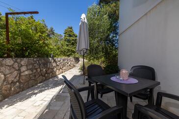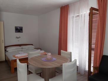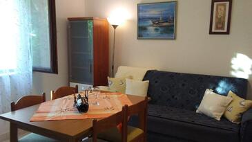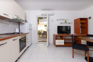 Ferienwohnung bietet Platz für 5 Gäste. Die Betten sind in Schlafzimmern, die es 2 gibt, und in Esszimmer, innerhalb einer Gesamtfläche von 43m2, angeordnet. Die Gäste haben eine eigene Terrasse zur Verfügung, auf der sie in warmen Sommernächten genießen können. Das Apartment bietet Meerblick. Für vollen Genuss und Entspannung gibt es einen privaten Grill für Gäste dieser Unterkunft.