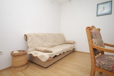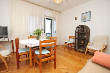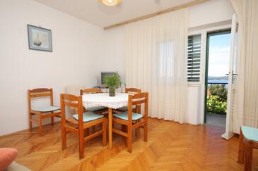 Ferienwohnung bietet Platz für 5 Gäste. Die Betten sind in Schlafzimmern, die es 2 gibt, und in Wohnzimmer, innerhalb einer Gesamtfläche von 56m2, angeordnet. Die Gäste haben eine eigene Terrasse zur Verfügung, auf der sie in warmen Sommernächten genießen können. Das Apartment bietet Meerblick. Es ist erlaubt, Speisen auf dem Gemeinschafts-Grill vorzubereiten. In der Unterkunftseinheit besteht die Möglichkeit des Mitbringens von Haustieren gegen Aufpreis.