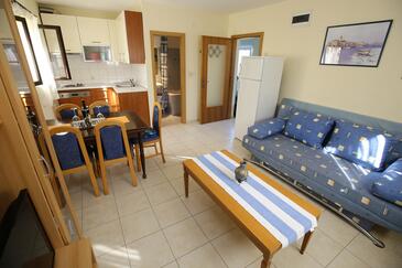 Ferienwohnung bietet Platz für 4 Gäste. Die Betten sind in Schlafzimmern, die es 2 gibt, innerhalb einer Gesamtfläche von 60m2, angeordnet. Die Gäste haben eine eigene Terrasse zur Verfügung, auf der sie in warmen Sommernächten genießen können. Das Apartment bietet Meerblick. Für vollen Genuss und Entspannung gibt es einen privaten Grill für Gäste dieser Unterkunft.