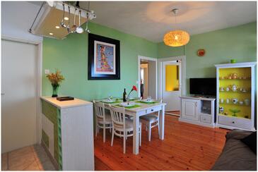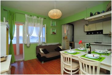 Ferienwohnung bietet Platz für 6 Gäste. Die Betten sind in Schlafzimmern, die es 2 gibt, innerhalb einer Gesamtfläche von 97m2, angeordnet. Die Gäste haben eine eigene Terrasse zur Verfügung, auf der sie in warmen Sommernächten genießen können. Das Apartment bietet Meerblick. Für vollen Genuss und Entspannung gibt es einen privaten Grill für Gäste dieser Unterkunft.
