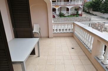 Ferienwohnung bietet Platz für 4 Gäste. Die Betten sind in Schlafzimmern, die es 2 gibt, innerhalb einer Gesamtfläche von 48m2, angeordnet. Die Gäste haben eine eigene Terrasse zur Verfügung, auf der sie in warmen Sommernächten genießen können. Das Apartment bietet Meerblick. Es ist erlaubt, Speisen auf dem Gemeinschafts-Grill vorzubereiten.